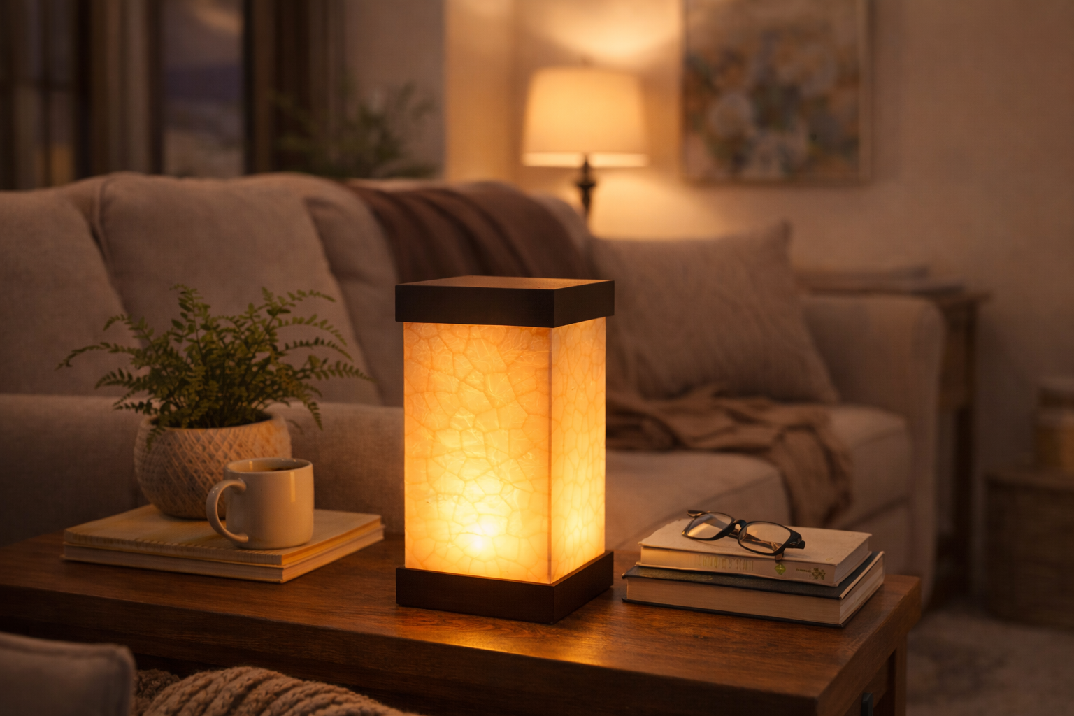The Vujara Luma is a modern ambient light sculpture designed to bring a sense of calm and balance into your space. Its organic, stone-inspired pattern gently diffuses light, creating a soothing glow that feels warm, natural, and grounding.